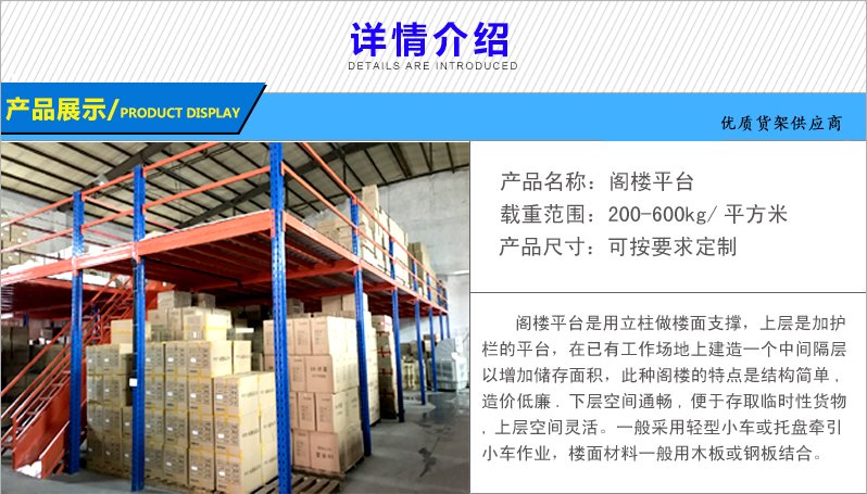 閣樓式貨架是在廠(chǎng)房地板面積有限的情形下,利用鋼梁和金屬板將原有儲(chǔ)區(qū)作樓層區(qū)分,每個(gè)樓層可放置不同的種類(lèi)的貨架,而貨架結(jié)構(gòu)具有支撐上層樓板的作用。閣樓式貨架在倉(cāng)儲(chǔ)設(shè)備中占有著十分重要的地位,閣樓式貨架的應(yīng)用實(shí)現(xiàn)了倉(cāng)庫(kù)管理的現(xiàn)代化進(jìn)程,全面提升倉(cāng)庫(kù)的功能。
